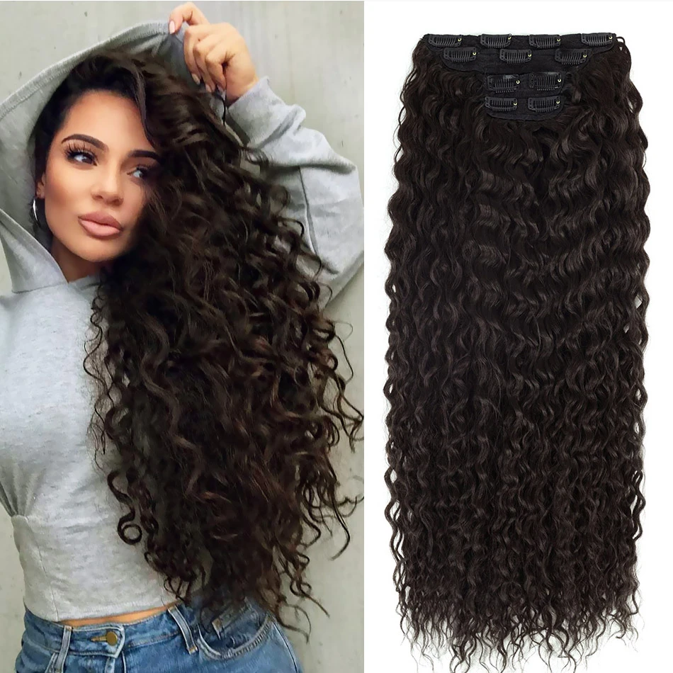 4pcs Long Curly Clip In Hair Extensions 28inches Synthetic Hair Extensions Anjo Dark Brown Fake Hair Afro Kinky Curly Hairpieces Aliexpress